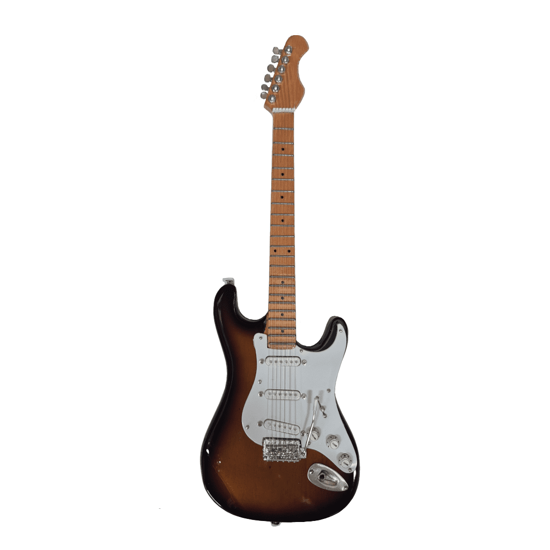This is an unlicensed, handmade miniature replica guitar. It is for display purposes only and cannot be played.